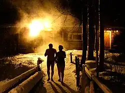 In a snowy winter, sauna bathers can also roll around naked in the snow to wear off the heat from the sauna.