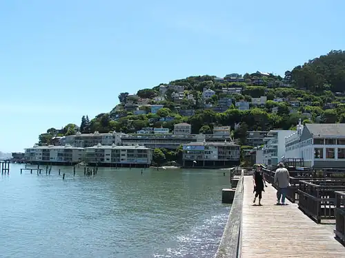 Sausalito is a unique and picturesque community, perched on a hillside between the San Francisco Bay and the Marin Headlands. Since it's across the Golden Gate Bridge from San Francisco, it makes a great trip by bike, ferry, bus, or car, for a good meal, a visit to an art studio, and views of the city from across the bay.