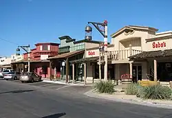 The Old Town section of Scottsdale is to the east of the gallery district. It showcases the ironic attempt of Scottsdale to both embody swank upscale style as well as a caricature of the gruff American West. This part of town is undeniably kitschy. Well over half the shops are gift shops. However, it is fun enough for a browse in a Disneyland sort of way.