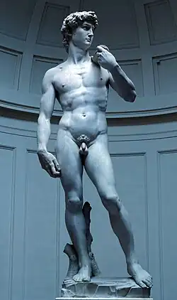 - David by Michelangelo, marble carving created between 1501 and 1504, the original is in the Galleria dell'Accademia, in Florence, Italy