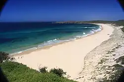 The town is very small and is perched on a steep hill overlooking Boat Beach. Infrastructure is very limited and consists of about a twenty architecturally designed beach houses, fisherman shacks, a seafood co-op and a general store. The locals are well known for their peaceful resistance to attempts by developers to commercialise the village. On entering the town by car, the words "Save Seal Rocks The Last Frontier" can be seen painted on the road.