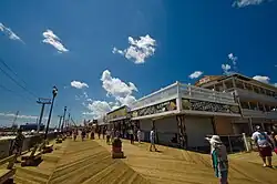 - 🌍 Boardwalk. Along the side of the beach is one of Seaside Heights' greatest attractions... the boardwalk! Funtown Pier and Beach/Casino Pier are the two sections that the boardwalk is split into. Arcades, snack shacks, and rides are available for children and adults to enjoy. Who knows you may even be lucky enough to win a prize at one of the many game booths located on the piers!