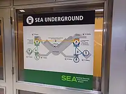 You can walk between concourses if you are within the Central Terminal. Passengers departing from N or S gates must ride the SEA Underground, formerly called the Satellite Transit System, to get from the Central Terminal to their gate. The SEA Underground has 3 lines: a loop line between A, B, and S gates (Blue Line); another loop line between C, D, and N gates (Green Line); and a line between A and D gates (Yellow Line). All lines are free of charge and very frequent, with trains typically arriving every 3 minutes at all hours.