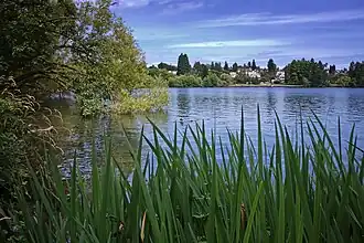 - π Greenlake Park. The focal point of the Green Lake neighborhood. The 2.8 mi (4.5 km) loop path around the lake is frequented by cyclists, runners, rollerbladers, and walkers. The lake is swimmer friendly; algae growth and closures were sometimes a problem before 2004, when the City of Seattle performed a comprehensive cleanup, and it is now one of the cleanest public swimming areas in the Seattle area.