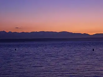 - π Golden Gardens Park. A wonderful saltwater beach park in Ballard, past the locks and Shilshole Marina. Water around here is too cold to swim except for crazy and determined kids during the hottest months, but you can wade a little, walk the beach, make sand castles, claim a fire pit, and watch wind surfers and ships go by. On clear days there is a magnificent view of the Olympics on the other side of Puget Sound. Kids of all ages have endless muddy fun trying to dam up or re-route the fresh water stream flowing across one end of the beach.