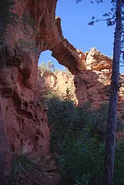 - π Devil's Bridge Trail, Dry Creek Rd (FR152) (12 miles west of Sedona). The largest natural sandstone arch in the area. The trail is short and moderately difficult, with outstanding views at the top. A high-clearance vehicle is recommended.