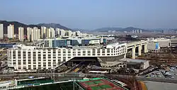 The city is 90 minutes south from Seoul by train on the Gyeongbu Line. Strangely though, the KTX high-speed rail does not stop at Sejong but instead stops at Osong station which is 25 minutes away by car from Sejong.