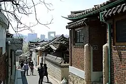 • 🌍 Bukchon Hanok Village (North Village, 북촌한옥마을), 84-1, Pildong 2(i)-ga, Jung-gu (get off at Exit 2 of Anguk Station and walk along the road for about 10 minutes to get there). The collective name of the few tiny suburbs ("dong") wedged between Gyeongbuk Palace and the Secret Garden, just north of Insadong and Anguk Station. This area was where relatives of the royal family, high public officials, and other important families lived for over 500 years as they serviced the nearby palaces. Today, some 900 of their traditional Korean "hanok" houses remain, making this area one of Seoul's most picturesque centres for arts, culture, food, and fashion. The flip side is that the neighbourhood has been heavily commercialized, is rather soulless, and on the verge of becoming a Korean theme park. Some streets no longer house local residents and have instead been taken over entirely by guest houses in faux hanok style. From 17:00 to 10:00, tourists are not allowed to enter the village. Self-styled neighbourhood guards in fantasy uniforms patrol the streets and rudely shoo visitors away. If your accommodation is in the area, they will let you pass grudgingly, but take cruel pleasure in proclaiming an absurd photo ban during the curfew. OSM directions
