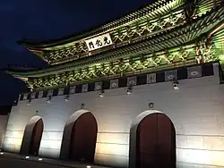 • 🌍 Gyeongbokgung (경복궁, 景福宮), 161, Sajik-ro (Gyeongbokgung (Metro Line 3) or Gwanghwamun stn (Metro Line 5, across the Gwanghwamun plaza)), +82 2-3700-3900. 09:00-18:00 (19:00 on holidays), closed Tuesdays. This is Seoul's grandest Joseon Dynasty-era palace and the seat of power for centuries before it was razed in 1592 by a Japanese invasion (and again by the Japanese in 1910). This was the first palace used by the Joseon Dynasty and was constructed after King Taejo founded the Joseon Dynasty and moved the capital to Hanyang. Large parts have now been restored, and the vast grounds also house the Joseon Palace Museum and the Korean Folk Museum. There's a small corner where you get the chance to try on traditional Korean dress for free after registering. Changing of the royal guard at Gwanghwamun (광화문, 光化門), the elegantly restored main gate to the palace, occurs twice a day at 10:00 and 14:00, as soldiers from the South Korean army dressed in Joseon-era uniforms march with traditional weapons to the tune of drumbeats for 20 minutes. ₩3,000. OSM directions