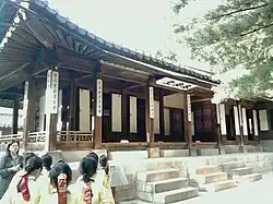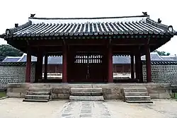 • 🌍 Changdeokgung (창덕궁, 昌德宮), 99 Yulgong-ro (Metro Line 3, Anguk station 5 min walk or Line 1, 3, 5 Jongno-3ga Station. Mainline bus (blue): 109, 151, 162, 171, 172, 272. Branch line (green): no.7025). Tu-Su 09:00-17:00. Second only to Gyeongbokgung in historical importance, it was built in 1405 and was the seat of power between 1618 and 1896. The buildings have been restored to create a dazzling but still elegant effect that got the palace listed as a UNESCO World Heritage Site. The site is better preserved than Gyeongbokgung. Buildings of particular note include the blue-roofed Seonjeongjeon, which was the King's office, and the Daejojeon ("Great Making Hall"), his bedchamber, but perhaps most famous of all is the Huwon ("Secret Garden") in the back. Access to the garden is by guided tour only, except on Thursdays when only self-guided tours are available in summer from April to August. English tours are only offered at 10:30 and 14:30 and last around 60 minutes with a walking distance of about 2.5 km, including some steps and incline for the Huwon portion (the grounds are wheelchair-accessible for most parts but may have to enter certain areas in a reverse direction from the group). Trivia: The building structure is not symmetrical and has a more natural-oriented arrangement than the Gyeongbokgung. You may find some Western influences in some buildings which were introduced during the late 1800s, such as a chandelier and the elevated pathway for the automobile. ₩3,000. OSM directions