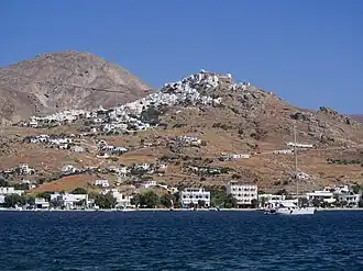 The main port of Livadi has many accommodation and other services and is where most visitors stay. Chora, (sometimes called Pano Chora,) the old island capital, is the other settlement of note. Smaller villages are scattered around the rest of the island.
