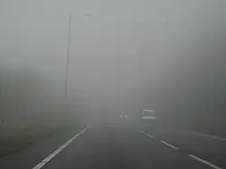 Surprisingly, fog is the most lethal kind of weather in some parts of the world. The deaths are usually caused by traffic accidents that become much more likely when visibility is reduced. In the same way, fog can be lethal in places where you must find your way or watch your step, for instance mountain environments. Fog is most common in the early morning just before sunrise, though there are places where fog is most common during other parts of the day. When driving a car in fog, go slow. If fog is very thick, you might need to wait it out. Sometimes there is fog only in valleys or by bodies of water; when driving downhill visibility can be abruptly reduced unless you are alert.