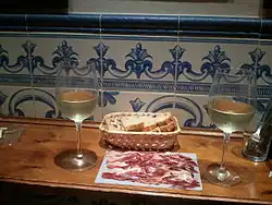 - 🌍 El Librero Tapas y Quesos, Pasaje de Andreu 4, Barrio de Santa Cruz (stone's throw from the Cathedral), ☏ +34 95 5276611, juanpedrogtena@hotmail.com. Does cheese dishes, ham dishes, tapas, menu del dia, etc. Very popular with locals. Menu del dia €13.60 (Sept 2020). Tapas for €2.60-3.40 (Oct 2021).