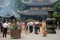 • 🌍 Longhua Temple (metro lines  11  and  12  Longhua). One of the city's less-visited temples for foreign visitors, but an important one and one of the most popular for Shanghai residents during religious festivals. It is one of the largest ancient Buddhist temples in Shanghai. The first temple was built in 247 CE, but it was destroyed and rebuilt under the Song dynasty, 977 CE, and several times since then. It is a temple of the Ch'an sect of Buddhism, better known in the West by the Japanese name Zen. Longhua Pagoda, in front of the temple, is from the 10th century and one of the oldest standing buildings in the city. OSM directions