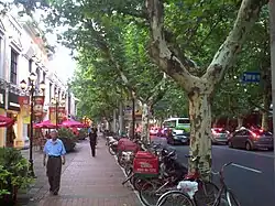 Wukang Road (old name Route Ferguson) is one of the best preserved residential streets of the French Concession. Still lined by ornate villas and grand apartment buildings, it is a favourite for visitors interested in Shanghai's diverse architectural heritage. The road connects Huashan Road to the north with the western part of Huaihai Road in the south. The narrow road is lined with plane trees, and is popular in autumn when the golden leaves cover the ground. Unfortunately, very few of the historic houses can be visited. There is one small area of the road which has been developed to house cafes, bars and restaurants, and is popular with expatriate residents of the area.