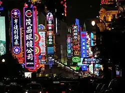 Nanjing Road (南京路 Nánjīnglù) is the most important commercial street in Shanghai, with hundreds of shops, many with a rich history. In the 1930s it was named one of the World's Seven Great Roads, and it is now making a comeback after decades of Maoist austerity. The road starts at the Bund, goes a long way West, and has upmarket shopping most of the way. It is the world's longest shopping district, around 6 km long, and attracts over a million visitors a day.