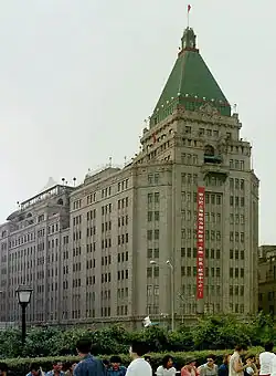 - 🌍 Peace Hotel (和平飯店; Hépíng Fàndiàn), Nanjing E Rd (on the Bund at the start of Nanjing Road), ☏ +86 21 6321-6888. Shanghai's grand old hotel, in 1930s Art Deco style and ideally located on the Bund. Perhaps somewhat overpriced given the lacklustre facilities and the spotty service. It has, however, a great cafe where you can enjoy a cup of coffee, as well as some jazz music played by the famous "Old Men's Jazz Band" made up of old musicians who played in the same hotel in the 1930s. In 2007, the hotel closed for a 3 year renovation and the North Building reopened in 2010 as the Fairmont Peace Hotel Shanghai. The hotel offers 269 deluxe guestrooms and suites with a selection of eight restaurants and lounges. A low-rise extension has been added to the rear of the hotel, housing guestrooms as well as a sky-lit swimming pool and spa. The renovation also preserved many elements of its historical 1920s and 1930s past.
