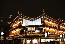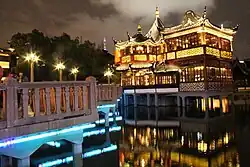 - 🌍 Yu Garden (豫园 Yù Yuán "Garden of Contentment"), 29 Chenxiangge Lu (Metro line 10 Yuyuan Garden), ☏ +86 21-63282465. 08:30-17:30. A traditional Chinese Ming-style private garden that was built in 1559 but ransacked and restored several times since then. Entrance price is worth it for the many exquisite Chinese pavilions, seemingly never-ending paths, and sculpted gardens within. Near the garden, the famous zigzag bridge and its teahouse (see Drink) can be visited. The bazaar near the garden is always crowded with tourists. ¥40.