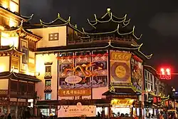 - City God Temple (Lao Cheng Huang Miao). The area around the Old City God Temple and the Yuyuan Gardens has become a large commercial hub, with many restored historical buildings as well as new buildings in a somewhat traditional style. Take photos, shop for souvenirs, and enjoy the many restaurants and eateries. Enjoy an illuminated diorama or other forms of 19th century street side entertainment. Come after 6:30PM when the lights show off the beauty of the buildings in a new way. Eat upstairs at one of the restaurants overlooking the square on Yu Yuan Lu (with a pond criss-crossed by a zigzag bridge and tea room) and see the reflections of the lights. (The City God Temple lies at the southern end of this commercial area, and the Yuyuan Garden at the northern end: the entrance to the Garden is near the zigzag bridge).