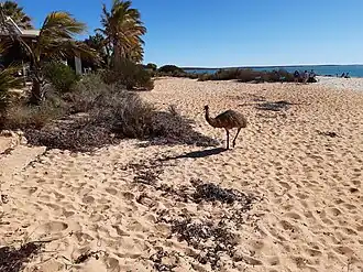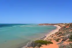 Shark Bay is a World Heritage Site in Gascoyne, Western Australia. The main town is Denham (2016 population 754) with the resort village of Monkey Mia (say "my-ah" not mee-ah) 25 km northwest. The area is well-developed for tourism and best known for its marine life, such as dolphins, turtles and dugongs, and its desert nature reserves.