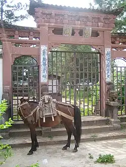 - 🌍 Pear Orchard Temple (Sheltered Mercy Nunnery 慈荫庵), 084 County Road 县道, Diantou Village 甸头村 (on entering Shaxi Valley, the temple is immediately on the right past the Diantou Village 甸头村 sign), ☏ +86 8724722296, reservations@shaxichina.com. 8am -5pm. The temple complex houses four unique shrines on four levels, together representing a mix of Buddhist, Daoist and Chinese folk religious traditions. Originally known as 'Ci Yin An' (Temple of Hidden Compassion), this breath taking multi-level temple complex is known as the Shaxi Pear Orchard Temple. Commanding spectacular views across the valley from its vantage point at the head of Diantou Village, was actually a functioning nunnery for much of its 1,000-year history. Since its complete restoration in 2014 by an American philanthropist, the temple now houses galleries, an organic restaurant, meditation and yoga practice spaces as well as clssrooms, gift shop and Shaxi Visitor's Centre. Free admission 免费.