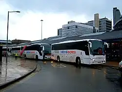 - 🌍 Sheffield Interchange, Pond Square, S1 2BD (2 min walk from Sheffield Midland Station). 5AM–11PM. The city's hub for regional and national bus services. National Express operate long distance coach services from all parts of the country, including a regular direct service from London (Victoria and Golders Green), as well as Birmingham, Cardiff, Glasgow, Leeds, London Stansted Airport, Milton Keynes and Swansea. There are also many bus services from towns in the local area, including from Bakewell, Barnsley, Buxton, Castleton, Chesterfield, Doncaster and Rotherham. Most local (city) buses don't serve the interchange, but use local stops at Arundel Gate or nearby instead.