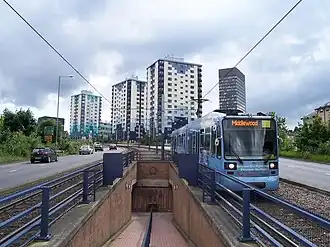 - 🌍 Malin Bridge Park and Ride, Holme Lane, S6 4JR (on the A6101, handy for coming in from the northern Peak District; on the Sheffield-bound A57, bear left onto A6101 soon after passing the "City of Sheffield" welcome sign). 104 parking spaces. Served by Supertram Blue route every 10 min during the daytime. 1 day: £1 from machine, plus £4.80 for two single tram tickets; pay on-board the tram.