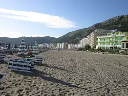 • 🌍 Rana e Hedhun (past the Port area). 08:00-19:00 in the winter, 24/7 in the summer for the shortcut road through the navy area, or use the bypass road anytime. This is an undeveloped stretch of coastline 6-km long just north of the city well known for its sand dunes and seascape near the mountain ridge. Entry to it is still a military area. You may take a hike or drive there. free. OSM directions target=_blank