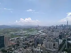 View of Luohu, Futian, and Hong Kong's New Territories from Shun Hing Square