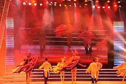 - 🌍 Splendid China & Chinese Folk Culture Village (锦绣中华, 中国民俗文化村; Jǐnxiù Zhōnghuá, Zhōngguó Mínsú Wénhuà Cūn) (OCT Metro Station, exit D, walk about 50 meters). 10:00–21:00; Splendid China closes at 18:00, but there still is night bus tours of Splendid China. It combines two different sections. The first part is a miniature park of China. You can find the famous Forbidden City, Terracotta Soldiers, Tibet Potala Palace, Huangshan Mountains, Yunnan's Stone Forest, and of course the Great Wall of China. This miniature park covers 300,000 m², fully forested with beautiful greenery and flowers. The second part consists of dozens of houses, temples, yurts, and so on, each representing one of the 56 ethnic groups in China, such as Miao, Yi, Bai, Mongol and Uyghur. You can find here real people, culture, fashion, customs, religion, language and food. As with all the Shenzhen theme parks, plenty of people go just for the fixed exhibits but main attractions are the shows. Uyghur women twirl to Turkish music, Miaos dance, a miniskirted Ming Dynasty troupe performs electronic versions of Ming music and dance—not to mention the acrobats. There is even a Tibetan rock band. The special effects are also amazing and it involves using laser to create an animated light tunnel. A Mongol horse battle held daily, just follow the smell of horse manure. Altogether the park is huge; between the shows and the exhibits it can easily be an all-day activity. ¥200.