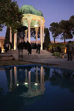 - 🌍 Hafez Tomb, ☏ +98 71 3228 4155. 8:00 - 22:00. Mausoleum of Hafez (1324–1391), the greatest master of Persian lyric poetry and the literary giant of the 14th century in the west and central Asia, was born in Shiraz, lived all his life here, sang its praises in unsurpassed verse and was buried in a garden known after him as the Hafezieh, in the northeast part of the city. The wide appeal of this poet among all Persian-speaking people make his tomb a cherished placed, visited by all. This mausoleum was rebuilt in the early 1950s. A flight of stone steps reaches to the tomb under a tiled cupola resembling a dervish’s hat. The tombstone is beautifully inscribed with two of Hafez’s poems or Ghazals. Visitors to the tomb can still, as they have done for centuries, take the omens, or faals, by picking a page at random from a volume of Hafez, kept for this purpose. 500,000 rials.