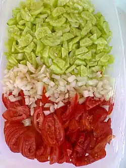- Shirazi salad - A delicious and famous salad available throughout Iran, made with cucumbers, tomatoes, onions and a simple lemon juice and olive oil dressing.