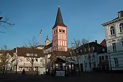 Siegburg (i.e. fort on the Sieg river) is a city in the district of Rhein-Sieg-Kreis, in North Rhine-Westphalia, Germany. It is on the banks of the rivers Sieg and Agger, 10 kilometres away from the former capital Bonn and 26 km away from Cologne. Siegburg is at the base of a "mountain" (St. Michael's Mount, about 40 m elevation), filled with picturesque cobblestone streets and traditional buildings. Although not being a major tourist location, you could enjoy a short visit to the old city center while traveling along.