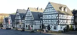 The moated Hainchen castle near Netphen (16 km to the east) dates back to 1290. In 1864 the last of the ruined castle towers were demolished. Since the 1970s, the castle has been rebuild. Meanwhile, the castle is used for disabled and elderly people.