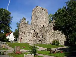 - 🌍 St Lawrence Church Ruin, Fågelsångsvägen 1A. Built in the first half of the 12th century. It was turned into a school after the Protestant reformation but was destroyed in a fire in 1658. All that remains today is one of the church towers.