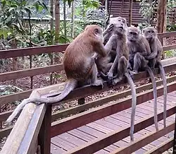 - π MacRitchie Reservoir, Lornie Rd (Bus 162, 166 from Scotts Rd, Bus 74, 132, 165 from Ang Mo Kio MRT Station or Bus 166 from Ang Mo Kio Bus Interchange), β +65 6468 5736. Park open sunrise to sunset, Treetop Walk open 09:00-17:00 Tu-Su. Rather more exciting than it sounds, this serene artificial lake is surrounded by acres of virgin jungle (and not a few golf courses). On the north side, the HSBC Treetop Walk is a 250-m bridge suspended as high as 27 m above the ground. Trails range from 3 to 11 km, and are of different difficulty levels. You can even hike all the way to Bukit Timah. There is a basic food court at the south entrance, and a ranger station with toilets and water at the 4.5 km mark (near Treetop Walk) on the north side. The park is also a popular haunt of canoeing enthusiasts, joggers, and strollers. For history buffs, this was also the site of a Shinto shrine (called the Syonan Jinja) built by the Japanese during World War II, and the ruins of the shrine, while largely inaccessible without navigational equipment, still survive. For wildlife enthusiasts, the area is also home to two species of monkeys; the crab-eating macaque, which is very numerous and you are almost guaranteed to run into, and the banded surili or banded leaf monkey, which is very shy and critically endangered in Singapore, meaning that you will be very lucky to spot some in the forest canopies. Free.
