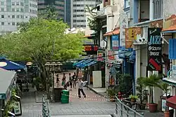 - π Lau Pa Sat, 18 Raffles Quay (near Raffles Place MRT). Open 24 hours. A nicely done up Victorian-style hawker centre, but a little pricier and hence quieter than most. Quiet during the day, every evening at 7 PM a section of Boon Tat St on the south side is closed to traffic and a long row of very popular satay stalls opens, with seating right on the pavement. Fatman Satay (Stall #1) generally gets the best reviews, but there are plenty of other good eats to be found.