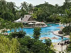 - 🌍 Shangri-La Rasa Sentosa Resort, 101 Siloso Rd, ☏ +65 6371 1088, reservations.sen@shangri-la.com. Opened in 1993, the granddaddy of all Sentosa hotels is also by far the largest on the island, with 459 rooms offering a well-maintained but rather generic package holiday experience. The main selling point is that this is Singapore's only genuine beach resort, with direct access to Siloso Beach and plenty of sea sports and family-friendly activities. $400.