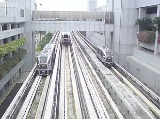Changi Airport is the terminus of the East-West line of the Mass Rapid Transit (MRT) rail system. While cheap, the MRT is aimed squarely at commuters: there are no express services; the trains are regular metro trains without baggage storage (although many of the train sets have handrails installed in place of seats in order to accommodate more standing passengers with luggage), and can get quite crowded during rush hour (mornings towards the city, evenings towards the airport). But if you're not in a rush, don't have too much luggage or are staying near a station, the train can still be worthwhile.