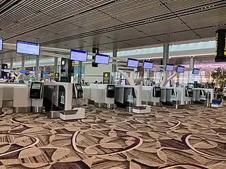 | Terminal 3: Concourse A & B Air New Zealand, Aircalin, Asiana Airlines, Batik Air, Batik Air Malaysia, Biman Bangladesh Airlines, China Airlines, China Eastern Airlines, Citilink, Drukair, Etihad Airways, EVA Air, Garuda Indonesia, Gulf Air, Myanmar National Airlines, Saudia, SriLankan Airlines, Thai Lion Air, T'way Air, US-Bangla Airlines, Vietnam Airlines, and Singapore Airlines flights to destinations not listed under T2 |