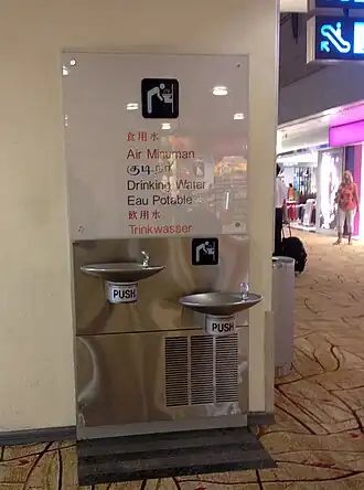 - Free water fountains are generally found next to the restrooms. While you can fill up your bottle with its water, saving money compared to buying bottled water, do not forget to empty it before proceeding through security for your flight.