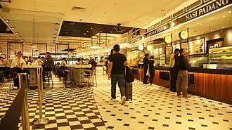 - Kopitiam, Basement 2. 24 hr. Food court serving local dishes at reasonable prices (by airport standards). From $6.