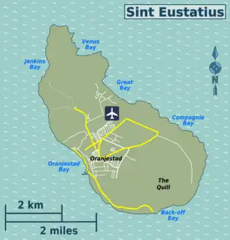 Sint Eustatius, locally known as Statia, is a small Dutch island in the Caribbean. Statia is very laid back and quiet. Do not come to Statia expecting nightlife, shopping, etc, or you will be disappointed. Nonetheless the island has considerable charm of its own, assuming you can slow down and appreciate what surrounds you. Although it is a Dutch island, everyone speaks English.
