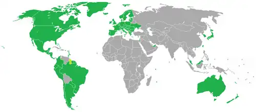 Countries whose nationals do not require a visa for a stay for up to 90 days