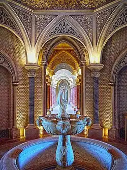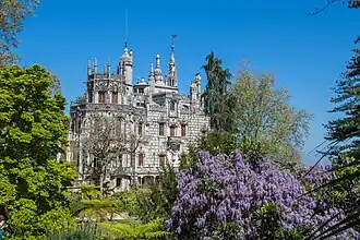 • 🌍 Quinta da Regaleira (Regaleira Palace and Gardens), Rua Barbosa du Bocage, +351 21 910 6650, fax: +351 21 924 4725, . Daily 10:00-18:30 (last admission at 18:00). Regaleira Palace is part of the built heritage included in UNESCO's world heritage list as 'Sintra cultural landscape'. Its origins date back to 1697, when the property was bought by José Leite, but it was only by the late 19th century that the history of the Palace and Gardens begins. In 1892 Carvalho Monteiro, an eccentric capitalist that had made a huge fortune in Brazil, bought the property and hired the Italian architect Luigi Manini to conceive a place that gathered, on the one hand, a sum of artistic currents (Gothic, Manueline and Renaissance) and, on the other hand, the glorification of national history influenced by mythic and esoteric traditions. A great variety of Masonic symbols is present in Regaleira Palace and Gardens. An important example is the magnificent Poço Iniciático (Initiation Well), looking like an upside down tower, where at every 15 steps a plateau is reached, in a total of nine leading to the depths of the earth. The nine plateaus remind the nine circles of Hell, the nine sections of Purgatory and the nine heavens of Paradise, as designated by Dante. Everyone seems to get lost looking for the Initiation Well – hang onto the map you get when purchasing your ticket! Adult €12, youth or senior €7, child (<6) free, family (2 adults, 2 youth) €32. OSM directions target=_blank