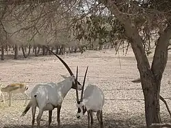 Sir Bani Yas Island is 170 km southwest of the city of Abu Dhabi and 9 km offshore from Marsa Jebel Dhanna. The island is the UAE's largest naturally-occurring one, at 17 1/2 km from north to south and 9 km from east to west. Sir Bani Yas plays host to a wildlife reserve whose area is over 87 km2. Many varieties of animals, birds and plants live on the island, and in the water, there are dolphins and turtles.