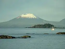 - π Mt. Edgecumbe. A dormant volcano that looks like Mt. Fuji, looms in the background and dominates views to the west.