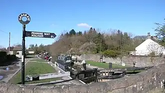 - The Pennine Way is lowland in this district. Northbound from Earby on A56 in Lancashire, cross the fields to Gargrave on A65. The Way then heads northwest, cutting over Eshton Moor and back into the Aire valley at Airton, thence north. At Malham you reach attractive karst scenery, the best being Malham Cove, Gordale Scar and Janet's Foss.