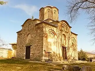 - 🌍 Church of Saint Nicholas (Црква „Св. Никола“), village of Ljuboten. This medieval church was built in 1337 by a donor by the name of Danica at the foot of the Skopska Crna Gora mountain range. Capped by a single cupola, the frescoes within the church date from its original construction. Due to the church's location in a now mostly Muslim village, it is often subject to theft. Ljuboten was a hotspot during the 2001 insurgency. From 2006 to 2017, the church was renovated.