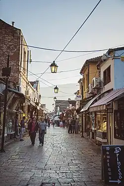 The Stara Čaršija (Macedonian: Стара Чаршија; meaning Old Bazaar or Old Town) of Skopje, North Macedonia, is the city's historic centre. First inhabited thousands of years ago, it was an important centre of commerce during Ottoman times when it enjoyed its peak importance. The Ottoman heritage is predominant in Stara Čaršija: there are roughly 30 mosques, three caravansaries, and a few hamams (Turkish baths) still standing, in addition to a clock tower and other Ottoman structures. Despite the earthquakes and various other disasters Skopje has seen, the neighbourhood is in very good shape. Many of its buildings were restored in the 2010s, largely funded by the Turkish government. It is an authentic Macedonian contrast to the controversial "faux historic" buildings being constructed around the city. A must-see when visiting Skopje, the Stara Čaršija is one of the largest and best collections of Ottoman architecture and history.
